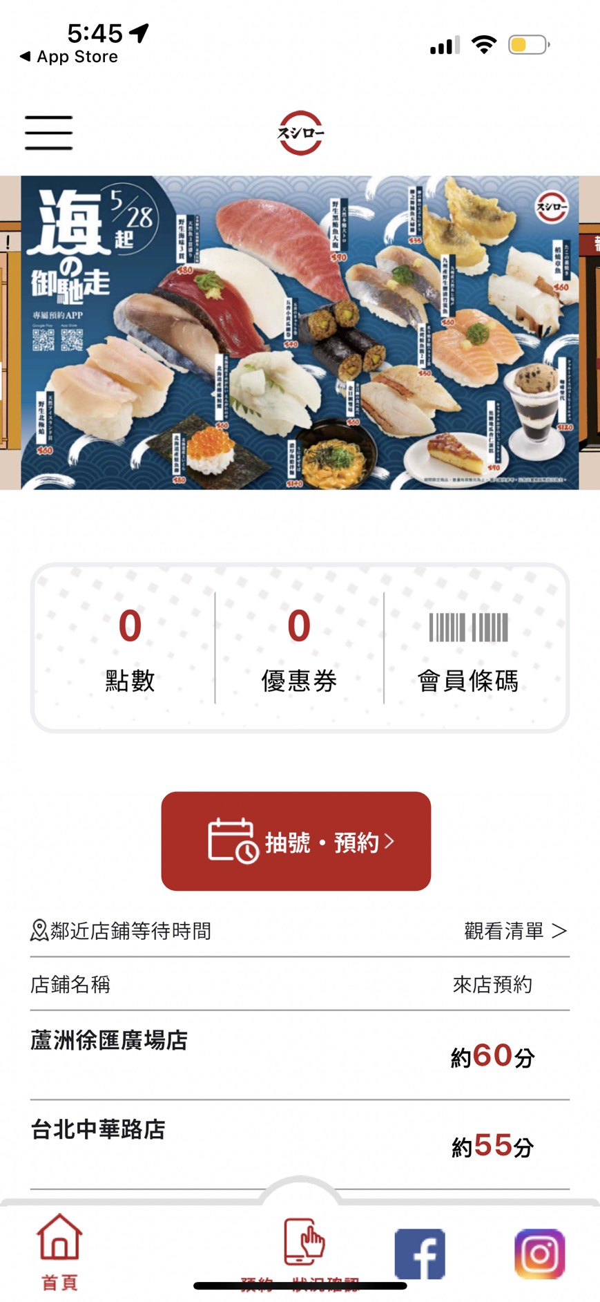 下載壽司郎APP,免費註冊會員,就可以使用APP訂位、累積點數、兌換獎品、查看消費紀錄,同時也能存放折價券。