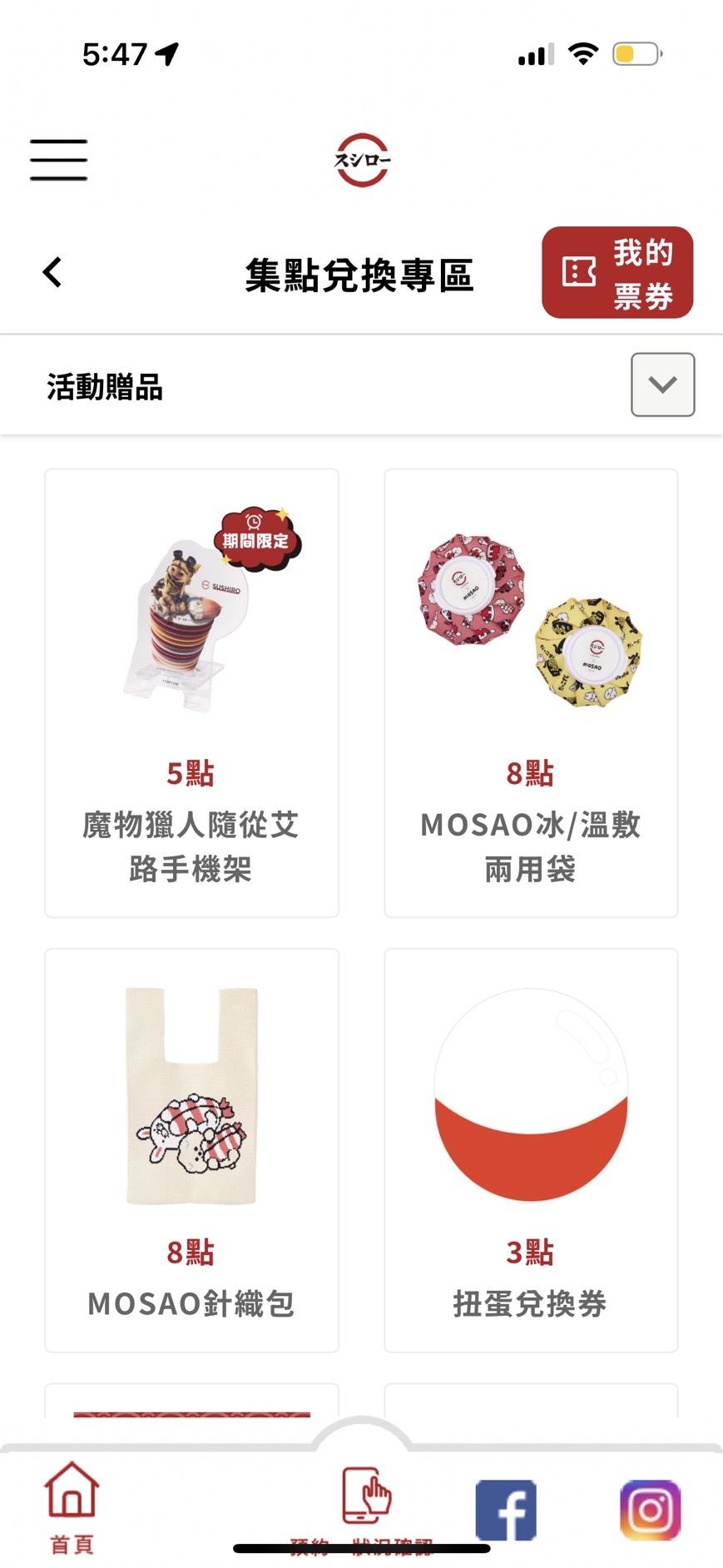 在集點兌換專區,可以看到當前可以兌換的活動贈品,不定期會推出新品!
